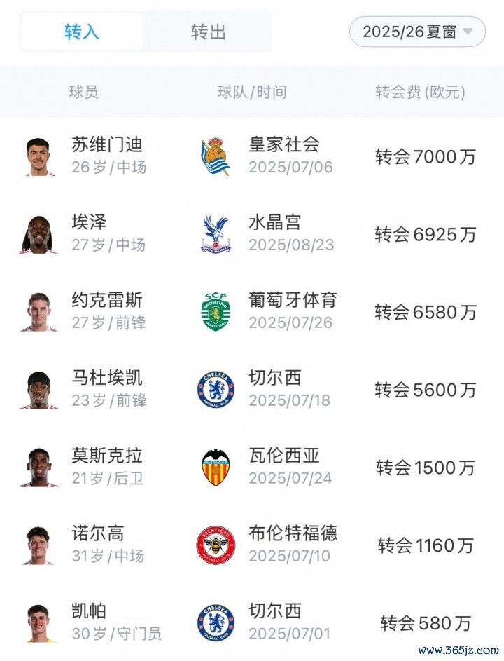 阿森纳今夏转会开销,现在累计2.9345亿欧元