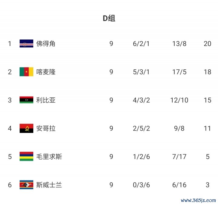 世初赛仅剩临了一轮,佛得角仍2分领跑,下轮面临小组垫底的斯威士兰,赢球即可确保队史初次晋级世界杯;喀麦隆第2逾期2分,但抓有7个净胜球上风。