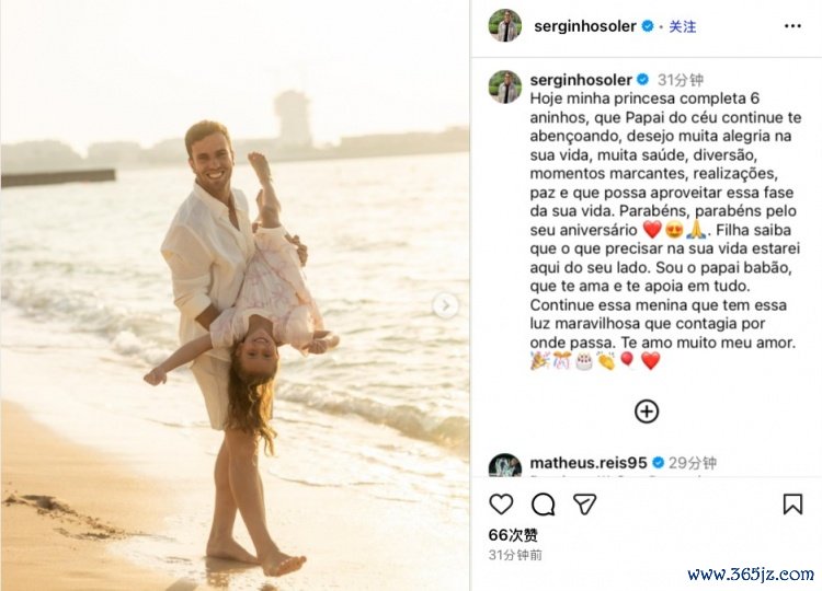 塞尔吉尼奥写说念:“今天我的小公主满6岁了,愿在天国的家东说念主们陆续保佑你,愿你吉利喜乐,健康成长,生存五彩斑斓,享受生存带来的乐趣。爸爸会一直陪在你身边,恒久爱你,提拔你作念思作念的事情。我爱你,亲爱的。”