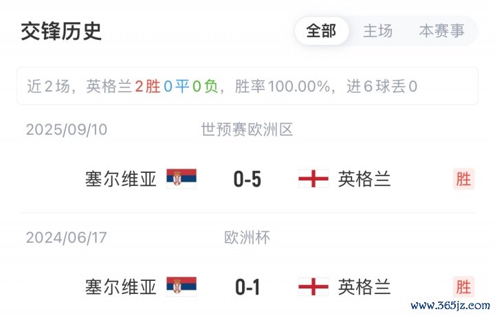 英格兰世初赛6轮全胜积18分,已提前两轮晋级全国杯;塞尔维亚世初赛3胜1平2负积10分位居K组第三,近3轮仅1胜,当今逾期第二的阿尔巴尼亚1分,将与其在终末两轮争夺附加赛限额。英格兰对阵塞尔维亚已获两连胜。