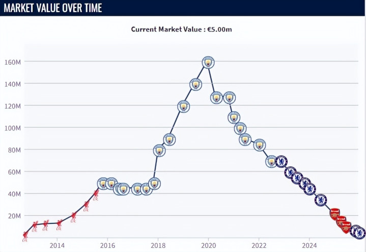 近几年的低迷发达,也让斯特林的身价直线下滑,在相比泰斗的身价网站《德国转会阛阓》的最新统计中,斯特林的最新身价也曾跌至500万欧元。要知谈在斯特林的巅峰期,身价但是达到过1.6亿欧元,当时的他即是最顶级的球员之一,整个寰球足坛身价比他更高的球员惟有姆巴佩和内马尔。但是在短短6年后,他的身价就足足缩水了32倍,从万东谈主追捧的明星,造成了无球可踢的弃子。