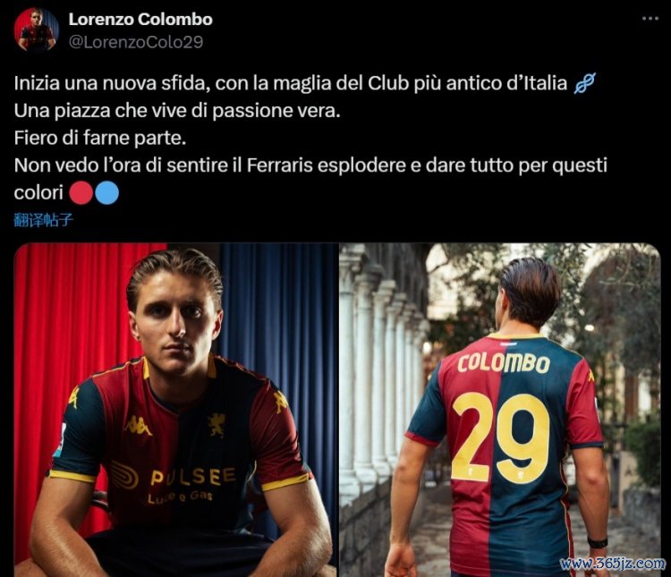 科隆博写说念:“开启一段新的挑战,身披意大利历史最悠久俱乐部的球衣。一个信得过充满情感的城市。我为能成为其中一员感到自爱。”