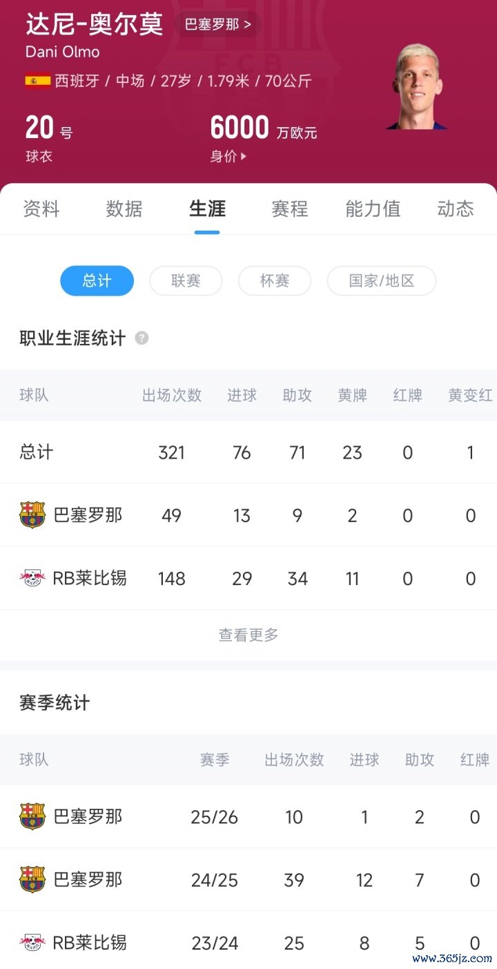 2024年夏窗奥尔莫以5500万欧元的转会费,从RB莱比锡加盟巴萨,首个赛季出战39场比赛孝敬12粒进球和7次助攻,是巴萨西甲夺冠的元勋之一。
