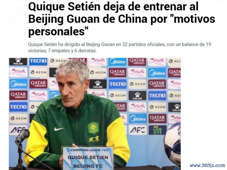 10月6日讯 日前,西班牙媒体《马卡报》、《宇宙体育报》报谈了北京国安主帅塞蒂恩因“个东谈主及家庭原因”离职的讯息。