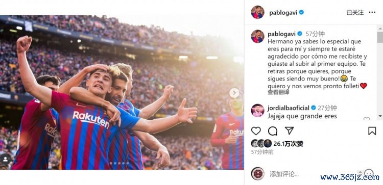 加维社媒晒出与阿尔巴的合照,并写说念:“昆玉,你仍是知说念你对我来说有何等终点,在我升入一线队的时刻,你的宽饶和换取让我恒久心胸谢意。”