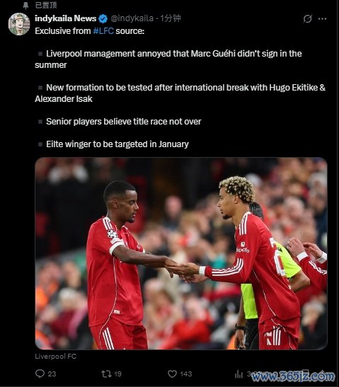 “利物浦处罚层对莫得在夏窗签下格伊感到恼火;海外比赛日后将测试新阵型,埃基蒂克&伊萨克;资深球员深信冠军争夺战还莫得纵容;精英级别边锋将在一月份成为筹谋。”