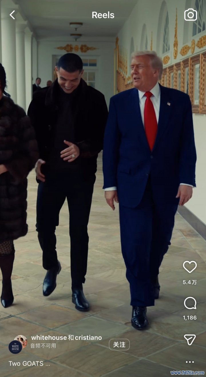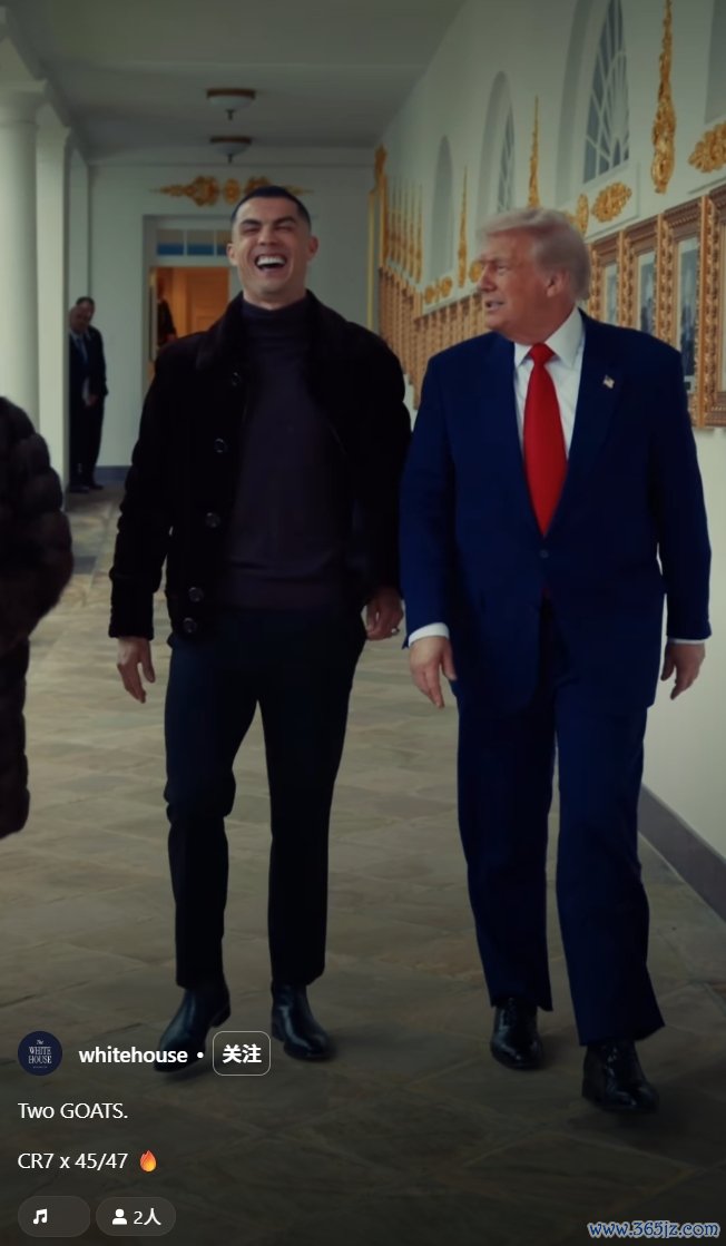 11月19日讯 白宫官方刚刚发布社媒,晒出了一段C罗与好意思国总统特朗普一同在走廊差别的片断,况兼配文:“Two GOATS,CR7 x 45/47🔥”。