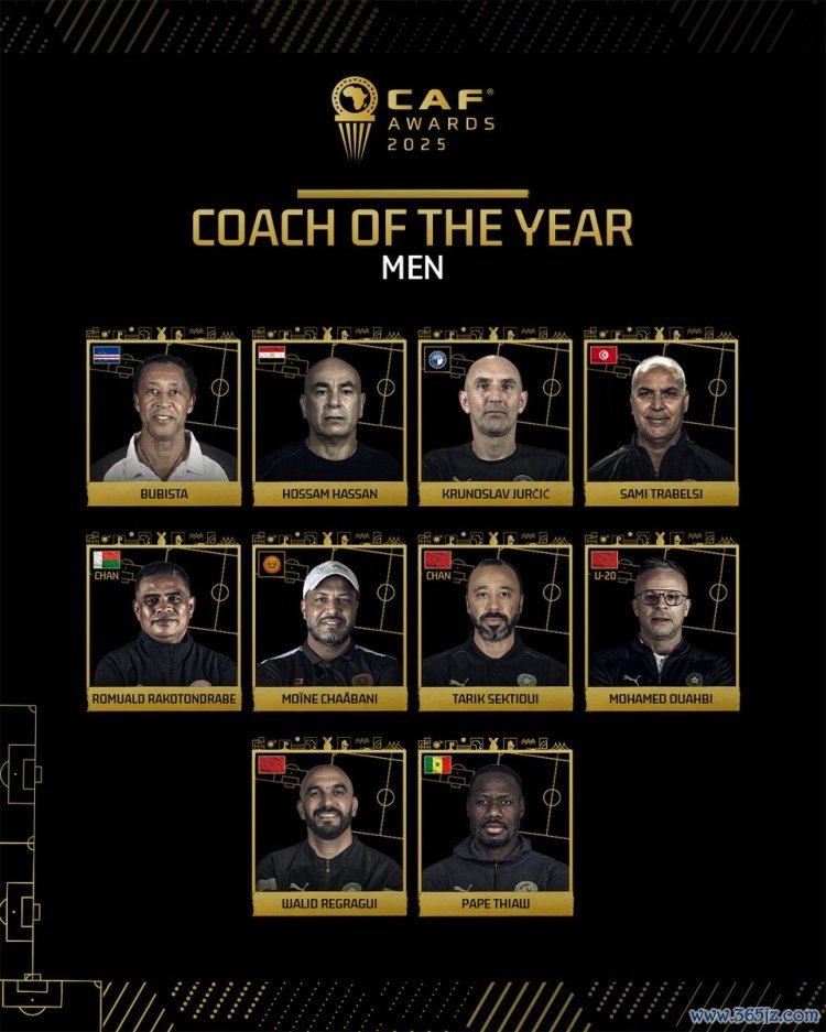10月22日讯 非洲足球伙同会(CAF)公布2025年度最好证实候选,佛得角主帅布比斯塔、率队获世青赛冠军的摩洛哥U20主帅瓦赫比等10名证的确列。