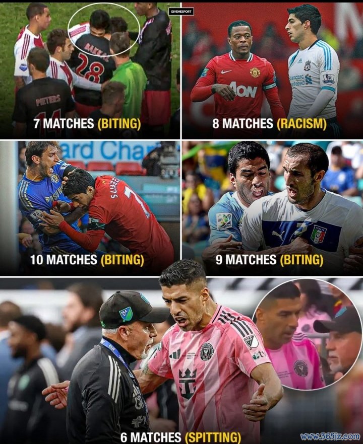 苏亚雷斯生存还曾因三次咬东谈主被禁赛,2013年因为咬伊万诺维奇被禁赛10场,还因为咬巴卡尔被禁赛7场,2014年因咬基耶利尼被禁赛四个月。