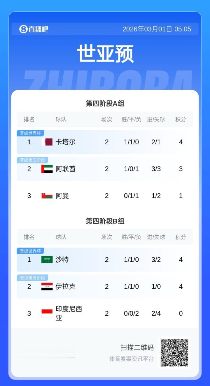 世预赛亚洲区4阶段足球球队排名: